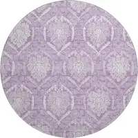 8' Gray and Brown Round Medallion Power Loom Distressed Area Rug