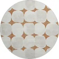 8' Gray And Gold Abstract Washable Round Rug With UV Protection