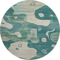 8' Gray And Ivory Abstract Geometric Washable Round Rug With UV Protection