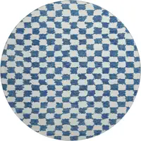8' Gray And Ivory Floral Washable Round Rug With UV Protection
