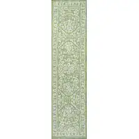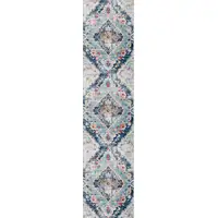 8' Gray and Ivory Geometric Hand Knotted Worn Faded Runner Rug