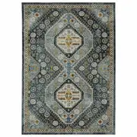 8' Gray And Ivory Geometric Washable Round Rug With UV Protection