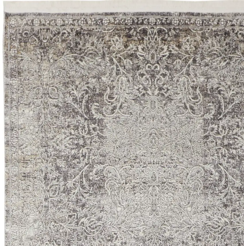 8' Gray and Ivory Oriental Power Loom Worn Faded Runner Rug