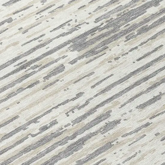 8' Gray And Ivory Round Striped Washable Indoor Outdoor Area Rug