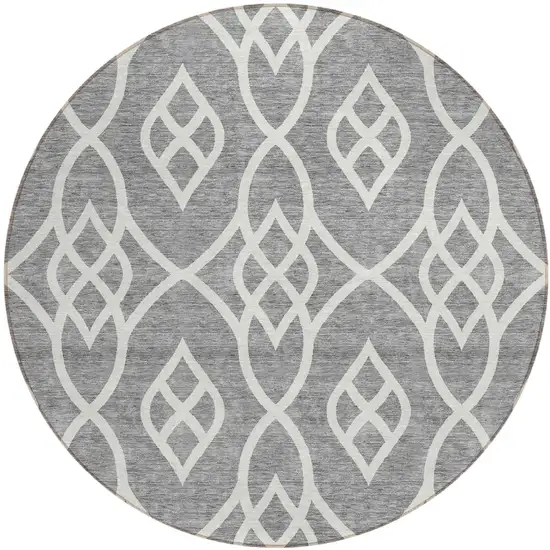 8' Gray And Ivory Round Trellis Washable Indoor Outdoor Area Rug