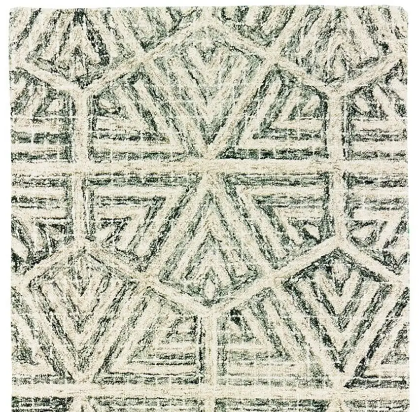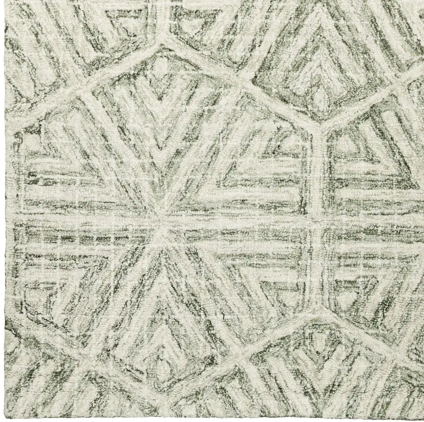 8' Gray And Ivory Wool Geometric Hand Tufted Runner Rug