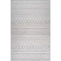 8' Gray And Pink Geometric Washable Round Rug With UV Protection