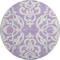8' Gray And Silver Abstract Washable Round Rug With UV Protection