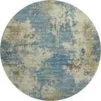 8' Gray And Silver Abstract Washable Round Rug With UV Protection