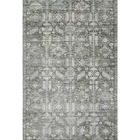 8' Gray And Silver Damask Washable Round Rug With UV Protection