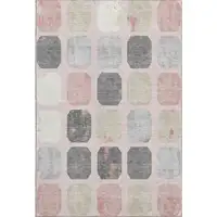 8' Gray And Silver Floral Washable Round Rug With UV Protection