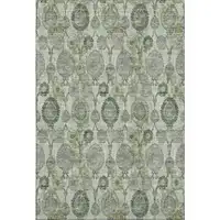 8' Gray And Silver Geometric Washable Round Rug With UV Protection