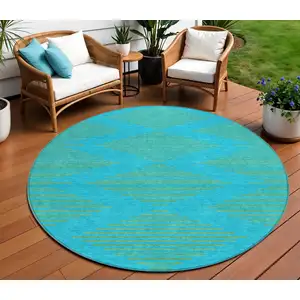 8' Gray And Tan Round Abstract Washable Indoor Outdoor Area Rug