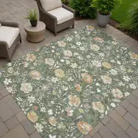 8' Gray And Teal Blue Square Medallion Indoor Outdoor Area Rug