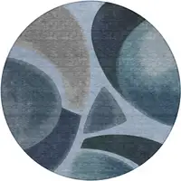 8' Gray Beige And Blue Round Floral Washable Indoor Outdoor Area Rug