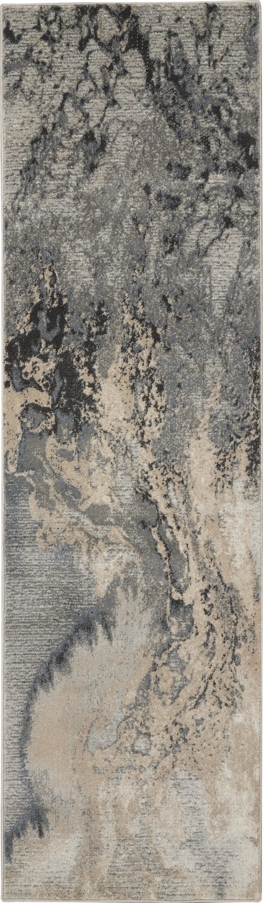 8' Gray Beige and Ivory Abstract Non Skid Runner Rug