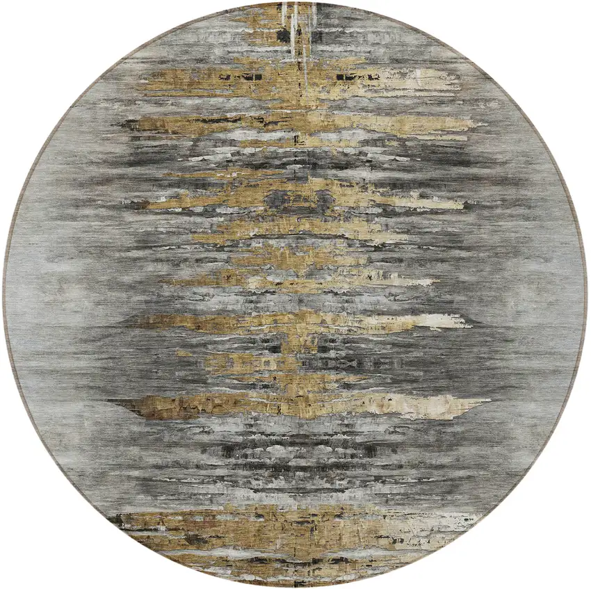 Add some artistry to your room with this 8-foot gray charcoal and silver round abstract washable indoor outdoor area rug. This geometric round shaped rug features a abstract pattern in gray, charcoal, and silver that combines a good looking print with a unique and updated shape. The mix of shape, color, and design gives this rug refreshing visual interest. Ideal for outdoor spaces or high traffic areas with kids and pets, this rug is made from heavy duty polyester that is stain resistant to help repel water, dirt, and stains. Versatile in use, durable, and easy to maintain, this rug is an ideal solution to add a decorative and inviting touch to your indoor or outdoor space. 96-inch h x 96-inch w x 0.19-inch d.