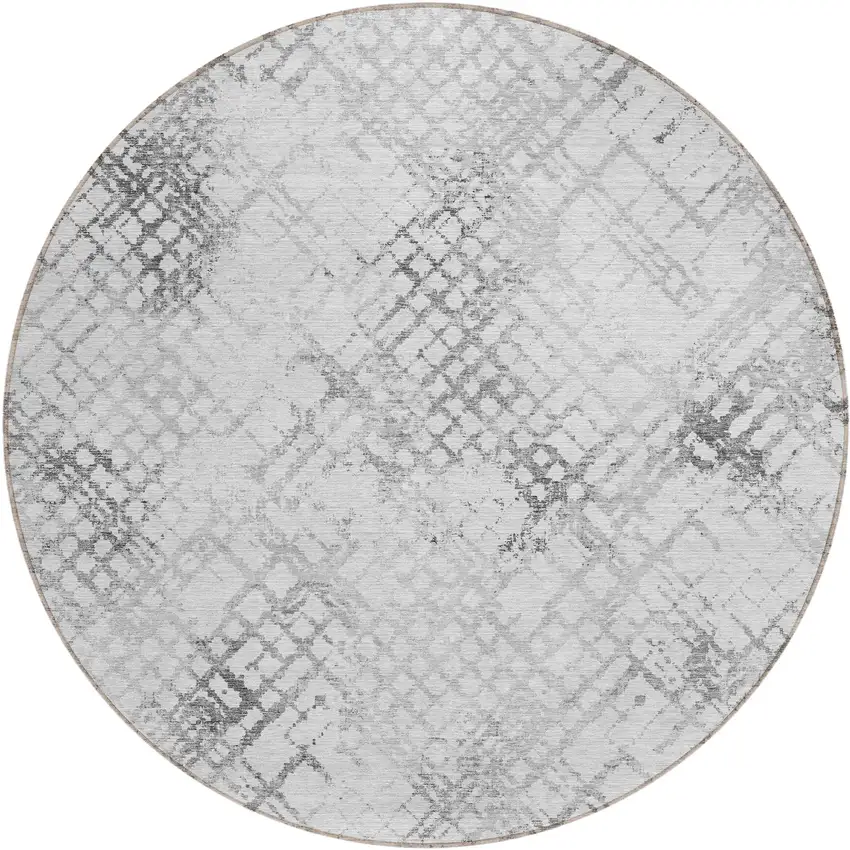 Add great coloration and comfortable texture to your space with this 8-foot gray charcoal and silver round geometric washable indoor outdoor area rug. This geometric round shaped rug features a geometric pattern in gray, charcoal, and silver that combines a good looking print with a unique and updated shape. The mix of shape, color, and design gives this rug refreshing visual interest. Ideal for outdoor spaces or high traffic areas with kids and pets, this rug is made from heavy duty polyester that is stain resistant to help repel water, dirt, and stains. Makes a great way to dress up your patio, porch, or poolside, but also works well as a durable and easy to maintain option in the kitchen, family room, or mudroom. 96-inch h x 96-inch w x 0.19-inch d.