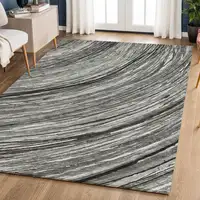 8' Gray Round Floral Power Loom Area Rug