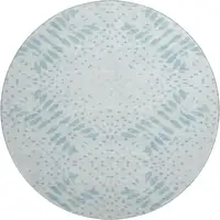 8' Gray Round Floral Power Loom Distressed Area Rug