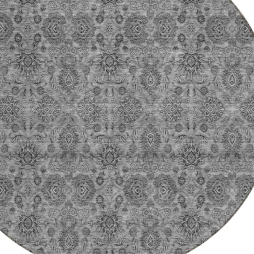 Set an inviting tone in your space with this 8-foot gray silver and charcoal round floral washable indoor outdoor area rug. This geometric round shaped rug features a floral pattern in gray, silver, and charcoal that combines a good looking print with a unique and updated shape. The mix of shape, color, and design gives this rug refreshing visual interest. Ideal for outdoor spaces or high traffic areas with kids and pets, this rug is made from heavy duty polyester that is stain resistant to help repel water, dirt, and stains. Makes a great way to dress up your patio, porch, or poolside, but also works well as a durable and easy to maintain option in the kitchen, family room, or mudroom. 96-inch h x 96-inch w x 0.19-inch d.