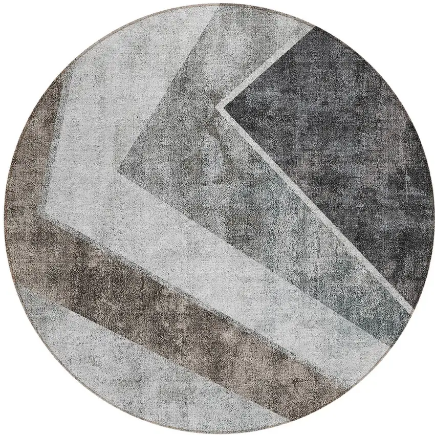 Set an inviting tone in your space with this 8-foot gray silver and charcoal round geometric washable indoor outdoor area rug. This geometric round shaped rug features a geometric pattern in gray, silver, and charcoal that combines a good looking print with a unique and updated shape. The mix of shape, color, and design gives this rug refreshing visual interest. Ideal for outdoor spaces or high traffic areas with kids and pets, this rug is made from heavy duty polyester that is stain resistant to help repel water, dirt, and stains. Makes a great way to dress up your patio, porch, or poolside, but also works well as a durable and easy to maintain option in the kitchen, family room, or mudroom. 96-inch h x 96-inch w x 0.19-inch d.