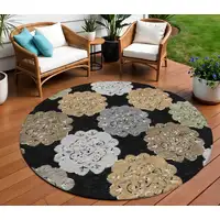 8' Gray Silver And Ivory Round Abstract Washable Indoor Outdoor Area Rug