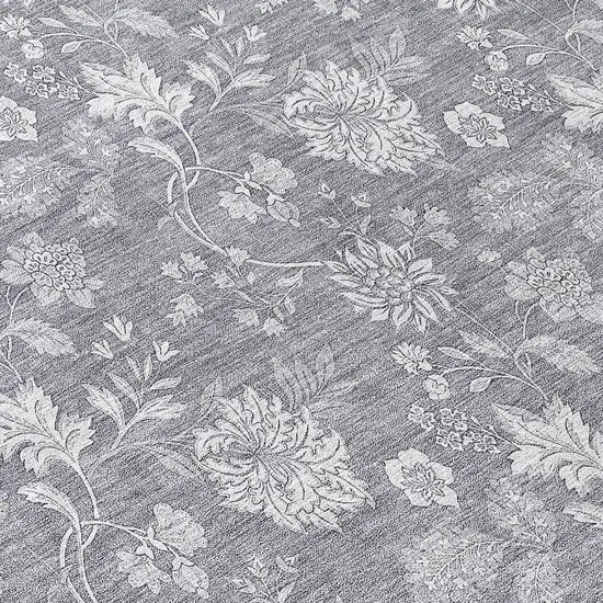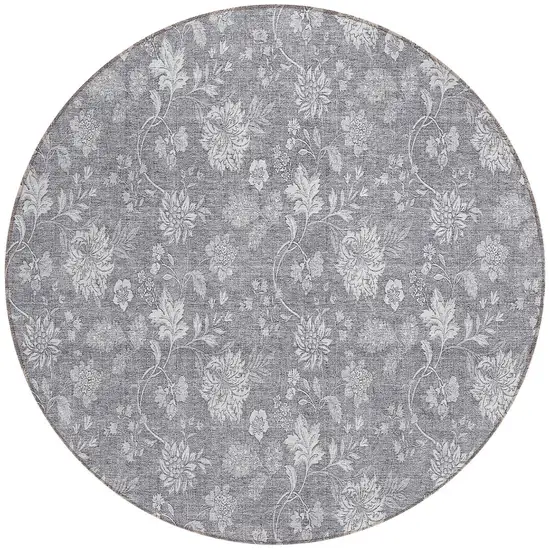 8' Gray Silver And Ivory Round Floral Washable Indoor Outdoor Area Rug