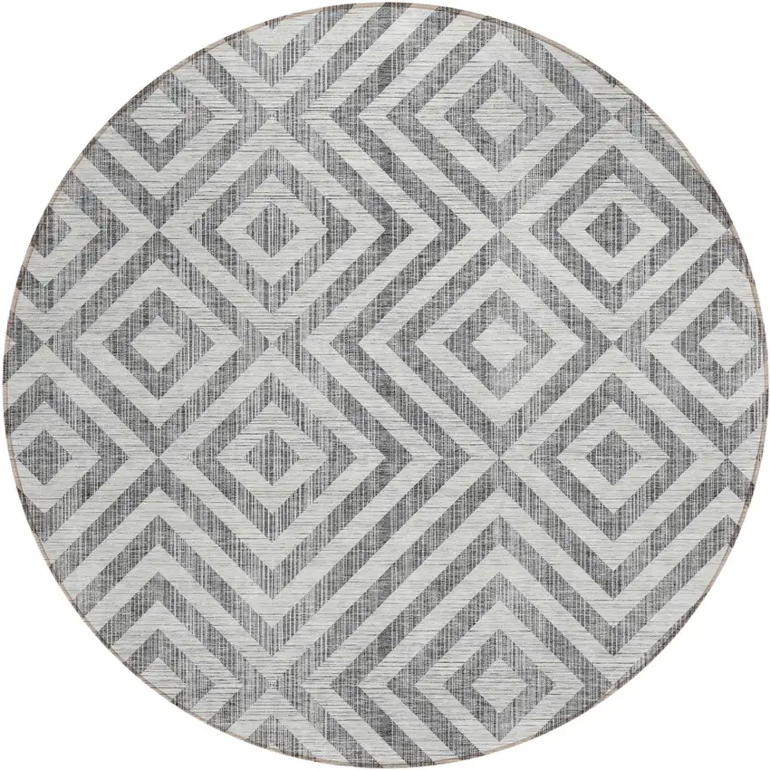 This 8-foot gray silver and ivory round geometric washable indoor outdoor area rug, is a great way to add warmth to a room. This geometric round shaped rug features a geometric pattern in gray, silver, and ivory that combines a good looking print with a unique and updated shape. The mix of shape, color, and design gives this rug refreshing visual interest. Ideal for outdoor spaces or high traffic areas with kids and pets, this rug is made from heavy duty polyester that is stain resistant to help repel water, dirt, and stains. Makes a great way to dress up your patio, porch, or poolside, but also works well as a durable and easy to maintain option in the kitchen, family room, or mudroom. 96-inch h x 96-inch w x 0.19-inch d.