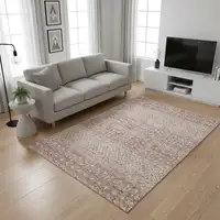 8' Gray Wheat And Beige Abstract Washable Round Rug With UV Protection