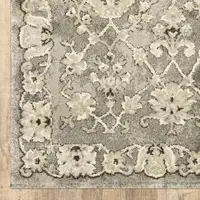 8' Green And Beige Geometric Washable Round Rug With UV Protection