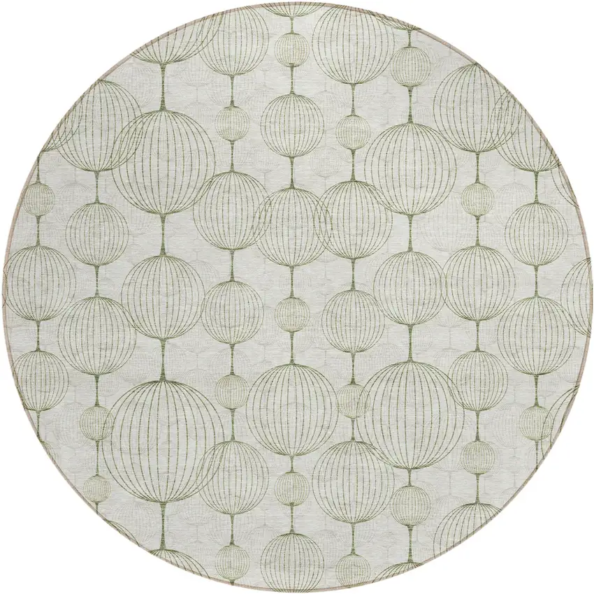 8' Green And Beige Round Geometric Washable Indoor Outdoor Area Rug