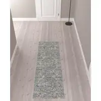 8' Green And Cream Geometric Indoor Outdoor Runner Rug