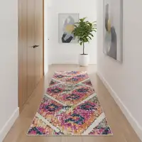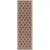 8' Green And Cream Medallion Indoor Outdoor Runner Rug