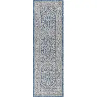 8' Green And Cream Moroccan Indoor Outdoor Runner Rug