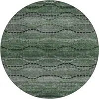 8' Green And Gray Round Plaid Washable Indoor Outdoor Area Rug