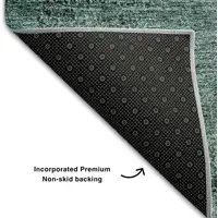 Set an inviting tone in your space with this 8-foot green and ivory abstract washable round rug with uv protection. Ideal for spaces with kids and pets, this rug is stain resistant to help repel dirt and spilled liquids. Built to last, this rug crafted from polyester fibers is known for its durability and long lasting appeal. Rugs are a great way to showcase your style, hide imperfections, warm your home and reduce noise. This larger sized, transitional styled rug is ready to create a focal point or statement piece in your room. 96.00-inch h x 96.00-inch w x 0.39-inch d.