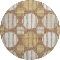 8' Green And Ivory Geometric Washable Round Rug With UV Protection