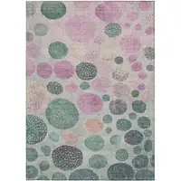 8' Green And Ivory Round Floral Washable Indoor Outdoor Area Rug