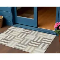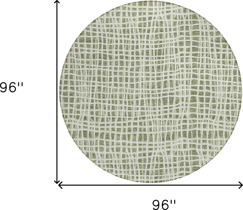 8' Green And Ivory Round Striped Washable Indoor Outdoor Area Rug