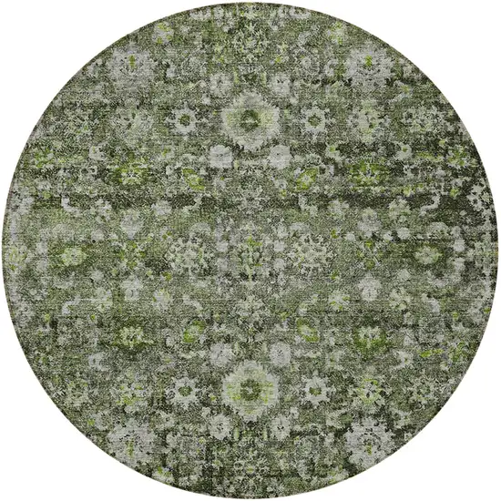 Add some artistry to your room with this 8-foot green and olive green round oriental washable indoor outdoor area rug. This geometric round shaped rug features a oriental pattern in green and olive green that combines a good looking print with a unique and updated shape. The mix of shape, color, and design gives this rug refreshing visual interest. Ideal for outdoor spaces or high traffic areas with kids and pets, this rug is made from heavy duty polyester that is stain resistant to help repel water, dirt, and stains. Versatile in use, durable, and easy to maintain, this rug is an ideal solution to add a decorative and inviting touch to your indoor or outdoor space. 96-inch h x 96-inch w x 0.19-inch d.