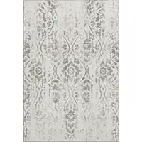 8' Ivory And Beige Floral Washable Round Rug With UV Protection