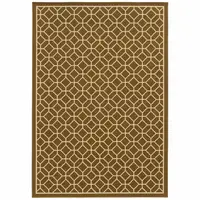 8' Ivory And Beige Round Abstract Washable Indoor Outdoor Area Rug