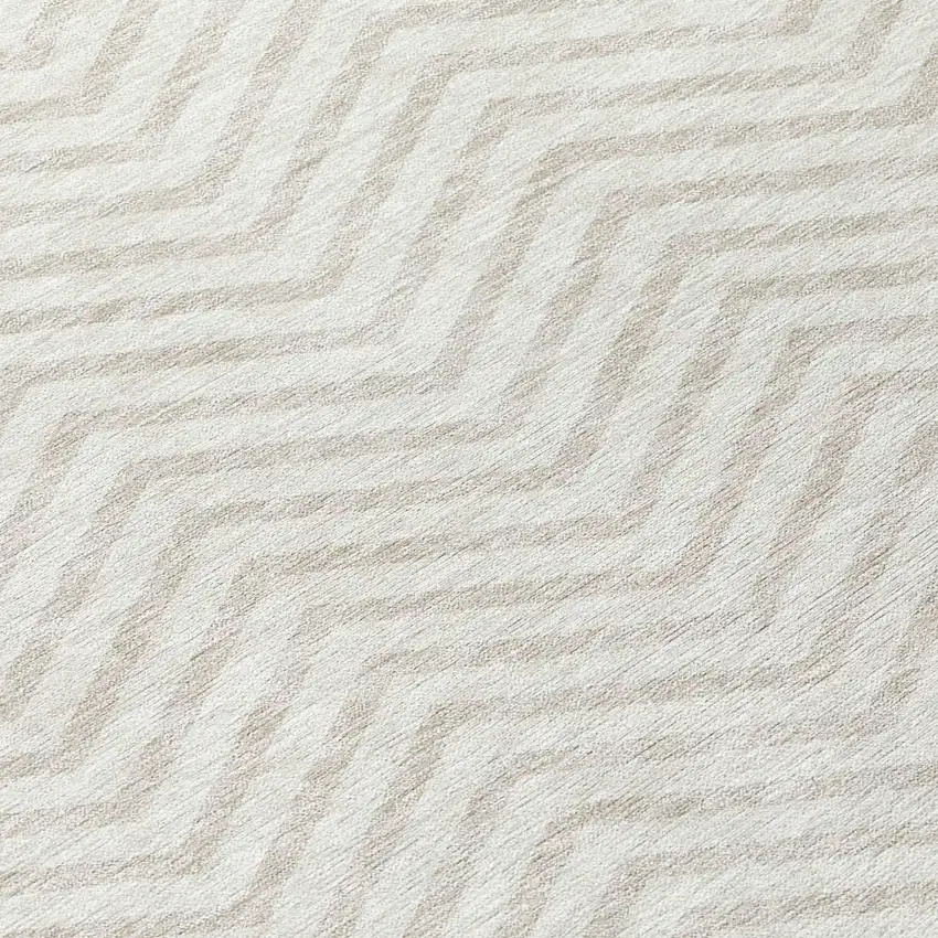 8' Ivory And Beige Round Chevron Washable Indoor Outdoor Area Rug