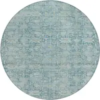 8' Ivory And Beige Round Damask Washable Indoor Outdoor Area Rug