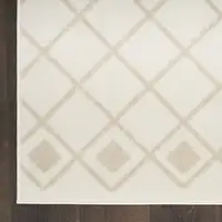 8' Ivory And Beige Striped Washable Round Rug With UV Protection