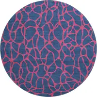 8' Ivory and Blue Abstract Distressed Round Rug