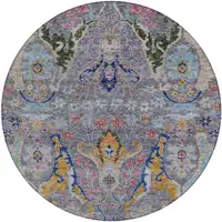 8' Ivory And Blue Round Geometric Washable Indoor Outdoor Area Rug