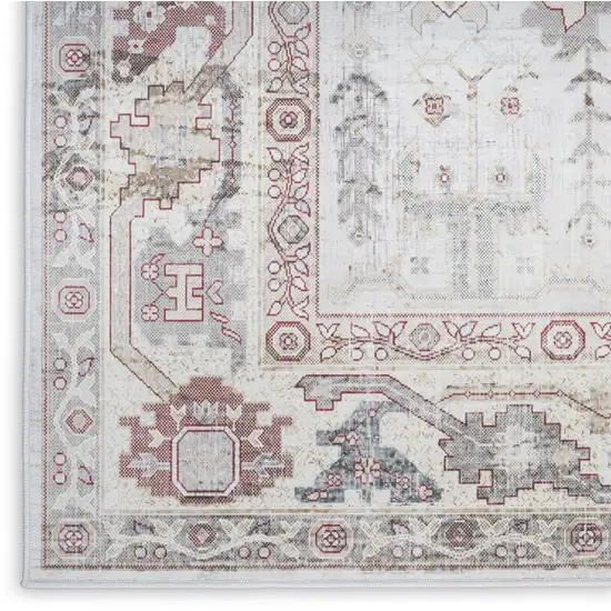 8' Ivory and Gray Tribal Distressed Non Skid Runner Rug