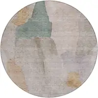 8' Ivory And Peach Round Geometric Washable Indoor Outdoor Area Rug